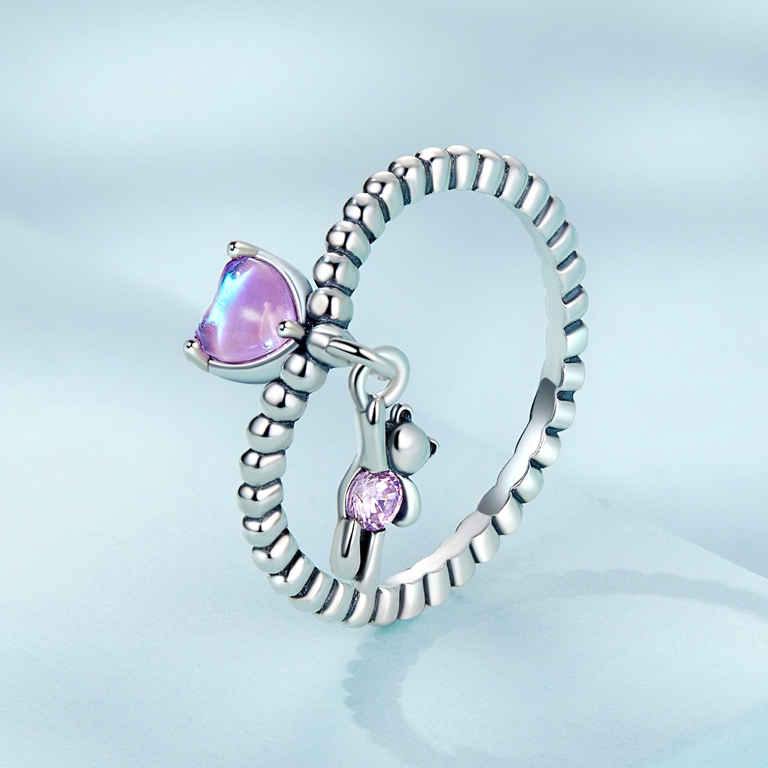 Say 'I love you and care for you' with the Silver Twirl Teddy Ring! Intricately crafted with sterling silver and featuring an adorable teddy bear charm, this eye-catching ring is sure to bring a smile to the face of your loved one. Plus, with its twirl-design, this ring is as whimsical as it is meaningful!