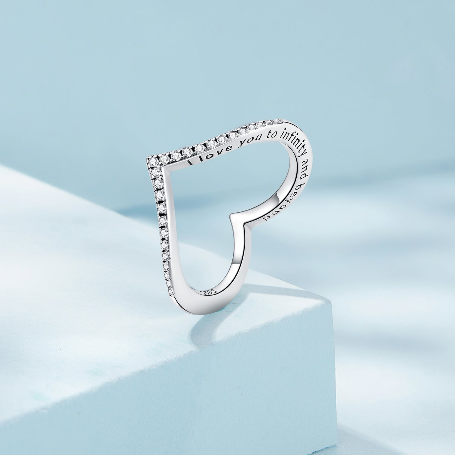 Our Silver Wishbone Affinity Ring is more than just a stylish accessory – it's a promise of undying love! Crafted with sterling silver, it boasts a wishbone symbol and an inscription of "I love you to infinity and beyond." Wear it as your reminder that your bond is forever!
